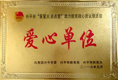 2019年1月,在兴平市“星星火,点点爱”助力脱贫微心愿认领活动中,必一体育官方网站(中国)漆被共青团兴平市委、兴平市教育局、兴平市扶贫办评为“爱心单位”