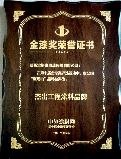2019年6月,必一体育官方网站(中国)漆的“必一体育官方网站(中国)”品牌在中外涂料网第十届金漆奖评选活动中被评为“杰出工程涂料品牌”