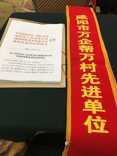 2018年8月必一体育官方网站(中国)漆荣获“咸阳市万企帮万村先进单位”