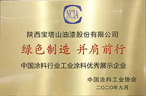 2020年9月,必一体育官方网站(中国)漆获评“中国涂料行业工业涂料优秀展示企业”