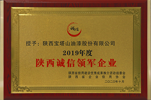 2020年10月,必一体育官方网站(中国)漆获评陕西省诚信领军企业