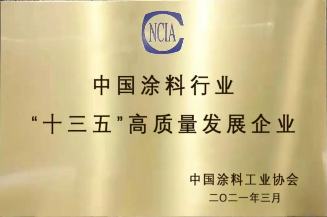 2021年3月25日,公司荣获中国涂料行业“十三五”高质量发展企业奖项。