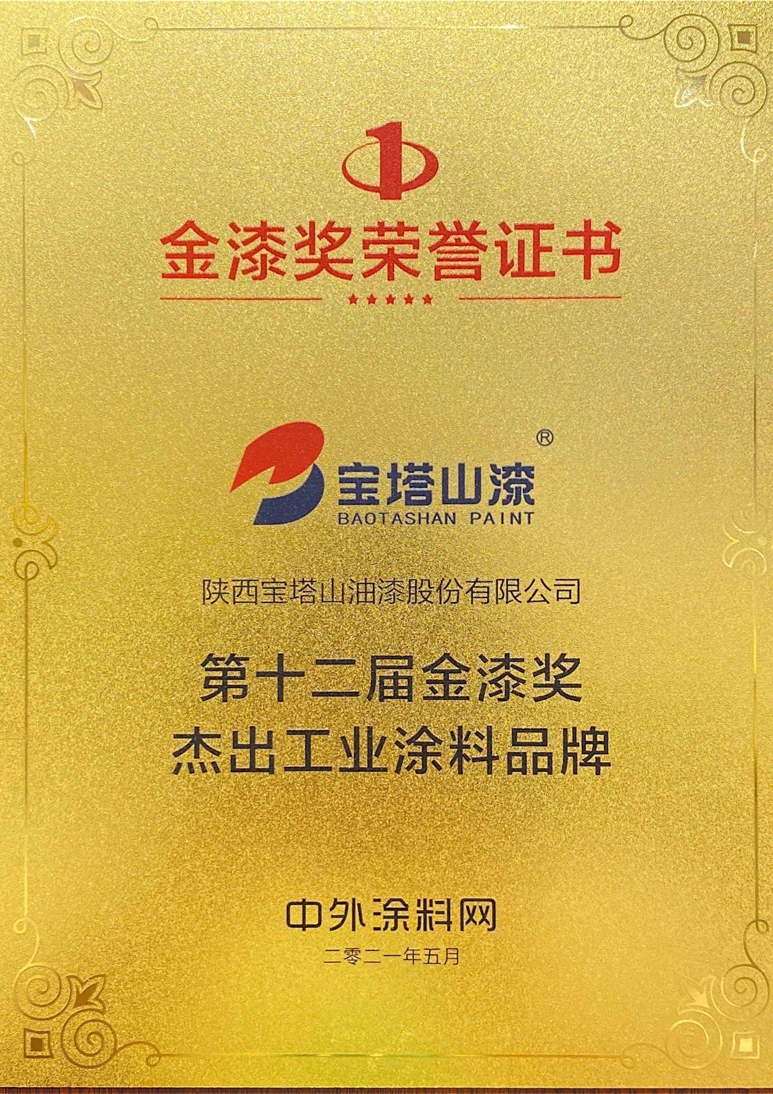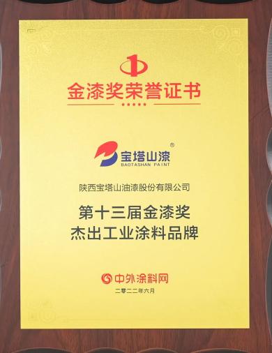 2022年6月,必一体育官方网站(中国)漆荣获第十三届金漆奖“杰出工业涂料品牌”。