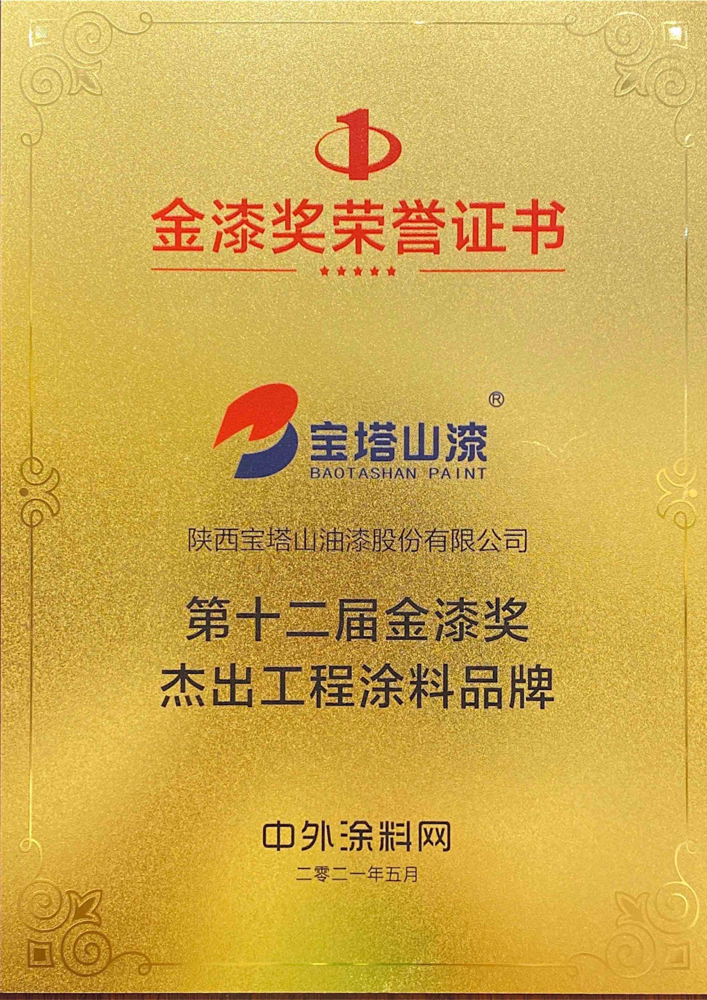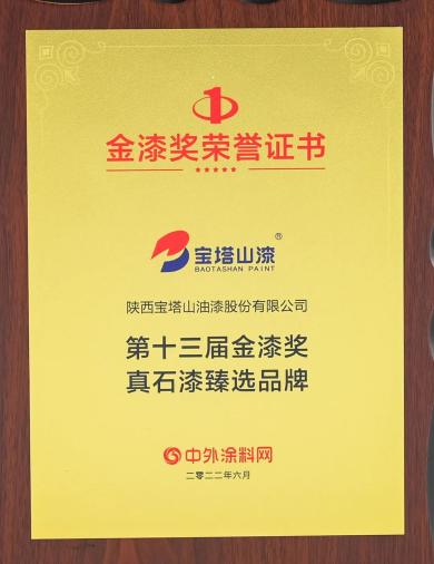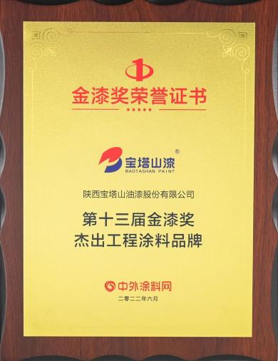2022年6月,必一体育官方网站(中国)漆荣获第十三届金漆奖“杰出工程涂料品牌”。