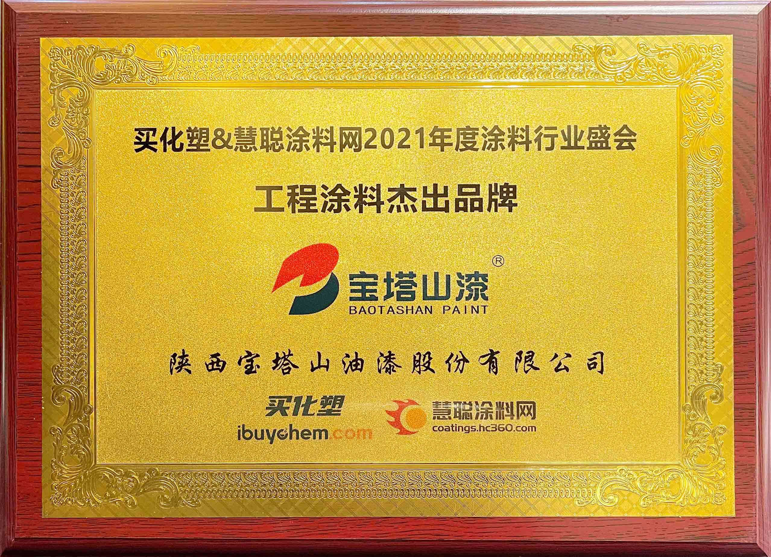 2021年6月26日,必一体育官方网站(中国)漆荣获2021 年度“工程涂料杰出品牌”