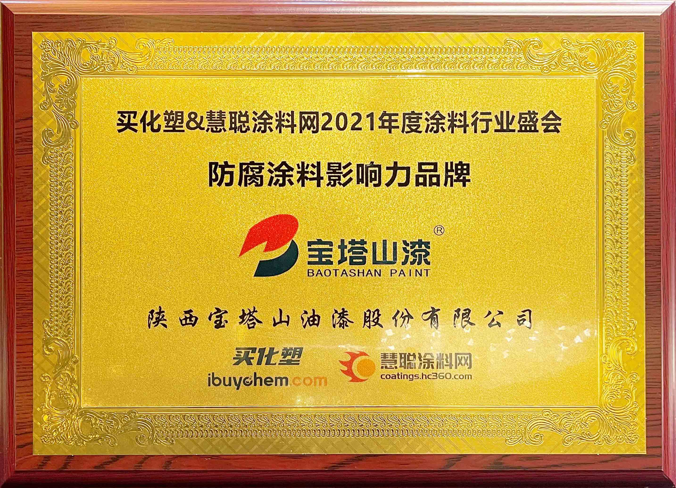 2021年6月26日,必一体育官方网站(中国)漆荣获2021 年度“防腐涂料影响力品牌”