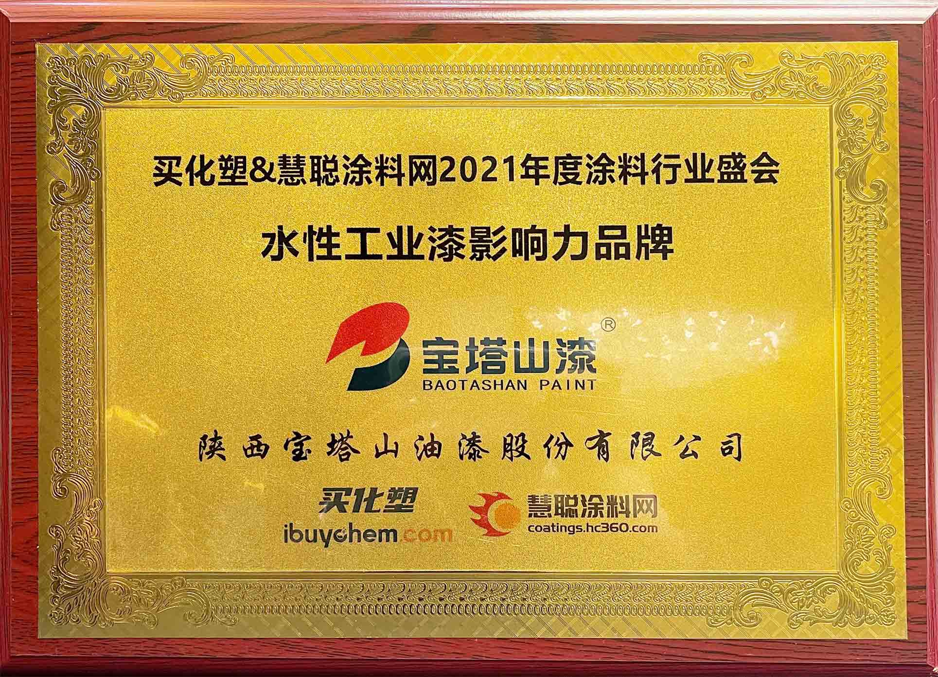 2021年6月26日,必一体育官方网站(中国)漆荣获2021 年度“水性工业漆影响力品牌 ”