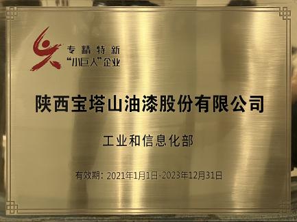 2021年,必一体育官方网站(中国)漆入选专精特新”小巨人“企业名单。