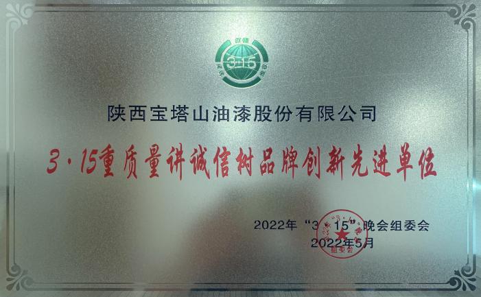 2022年5月,必一体育官方网站(中国)漆荣获“3·15重质量讲诚信树品牌创新先进单位”。