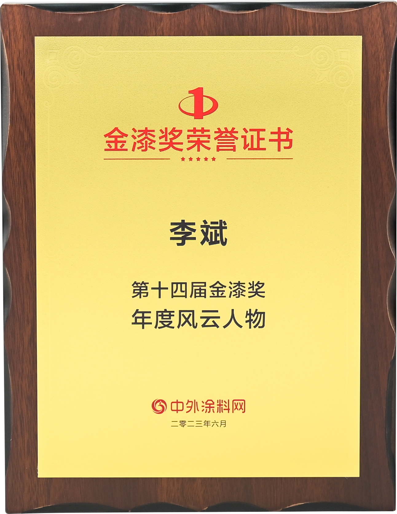2023年6月,必一体育官方网站(中国)漆李斌同志在中外涂料网第十四届金漆奖评选活动中被评为“年度风云人物”。